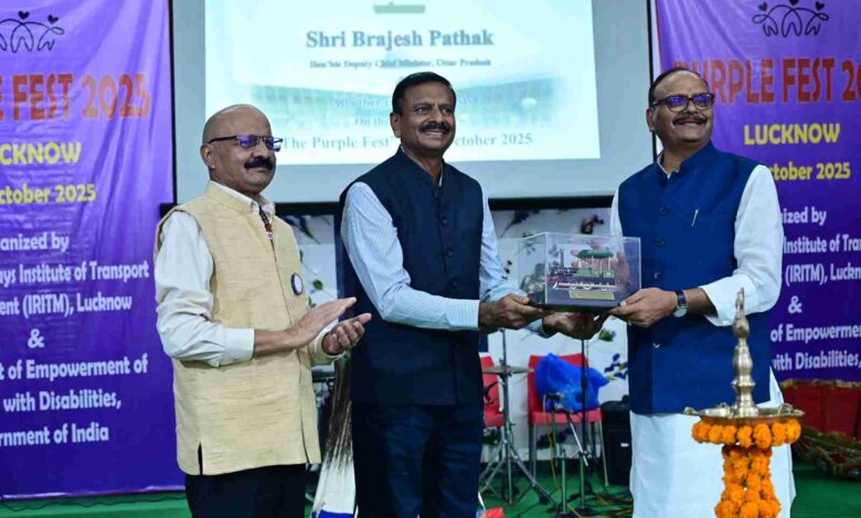 भारतीय रेल परिवहन प्रबंधन संस्थान (IRITM), लखनऊ में आयोजित पर्पल फेस्ट 2025 ने समावेशिता, गरिमा और सशक्तिकरण का शानदार संदेश दिया। भारत सरकार के दिव्यांगजन सशक्तिकरण विभाग (DEPwD) के सहयोग से आयोजित इस महोत्सव में दिव्यांगजनों के कौशल, रचनात्मकता और उद्यमिता को मंच मिला। उत्तर प्रदेश के उपमुख्यमंत्री ब्रजेश पाठक ने मुख्य अतिथि के रूप में शिरकत कर कार्यक्रम की गरिमा बढ़ाई।