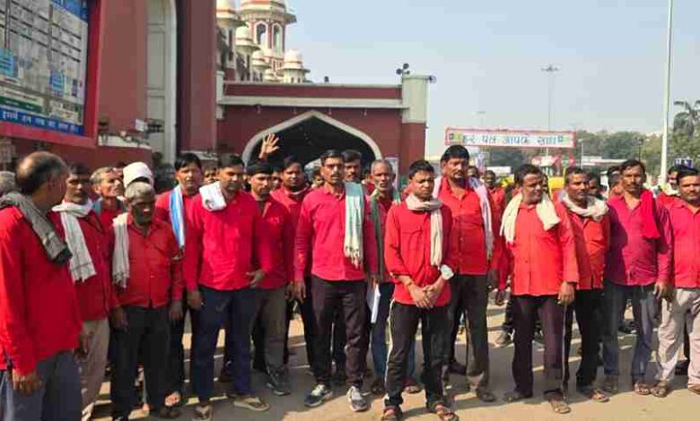 बैटरी चलित कार संचालन के संबंध में रेल मंत्रालय द्वारा दिए गए दिशा निर्देशों का पालन करने और बैटरी कार को विकलांग, बीमा, असहाय और वृद्ध लोगों के लिए ही संचालित करने व उस पर सामान न ढ़ोने और रेलवे के कुलियों को नौकरी देने के सवाल पर आज चारबाग स्टेशन पर राष्ट्रीय कुली मोर्चा से जुड़े कुलियों ने प्रदर्शन किया। राष्ट्रीय कुली मोर्चा की तरफ स्टेशन निदेशक, चारबाग को मांग पत्र दिया गया। मांग पत्र में कहा गया कि यदि 20 नवंबर तक रेलवे मंत्रालय के दिशा निर्देशों के अनुरूप कार्रवाई नहीं होती तो पूरे देश में विरोध कार्यक्रम किए जाएंगे।