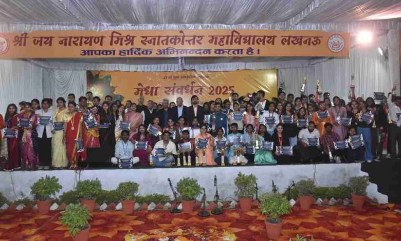 श्री जय नारायण मिश्र महाविद्यालय में आयोजित दो दिवसीय युवा सांस्कृतिक प्रतियोगिता मेधा संवर्धन 2025 का समापन शुक्रवार को पुरस्कार वितरण के साथ हुआ। मुख्य अतिथि डीएवी डिग्री कॉलेज, लखनऊ के प्राचार्य प्रो. राजीव त्रिपाठी ने विजयी प्रतिभागियों को सम्मानित किया और युवाओं को समय के सदुपयोग व आत्मनिर्माण का संदेश दिया। कार्यक्रम में कला, नृत्य, नाटक, साहित्य और रचनात्मकता से भरपूर विविध प्रस्तुतियां हुईं।