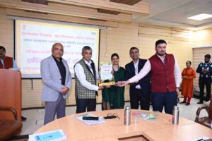 सहायक पासपोर्ट अधिकारी संजीव सक्सेना, कनिष्ठ अनुवाद अधिकारी लकी सिंह और श्वेतांक सक्सेना ने क्षेत्रीय पासपोर्ट कार्यालय पहुंच कर उन्हें शील्ड सौंपी। RPO शुभम ने पूरी टीम और पासपोर्ट कर्मियों को शाबाशी दी।